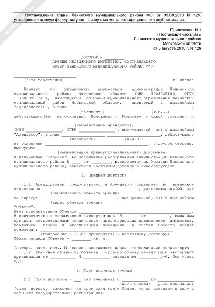 - 258Договор аренды недвижимого имущества, составляющего казну Ленинского муниципального района Московской области