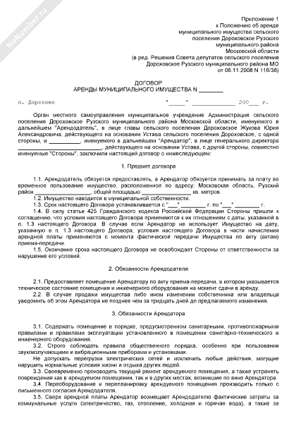 - 249Договор аренды нежилого помещения на территории сельского поселения Дороховское Рузского района Московской области