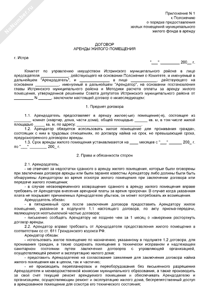 - 247Договор аренды жилого помещения в Истринском муниципальном районе Московской области
