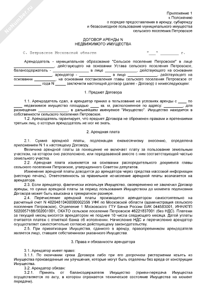 - 271Договор аренды недвижимого имущества сельского поселения Петровское Московской области