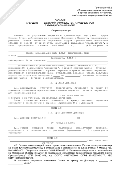 - 263Договор аренды движимого имущества, находящегося в муниципальной казне города Орехово-Зуево Московской области