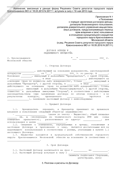 - 275Договор аренды недвижимого имущества, находящегося в муниципальной собственности городского округа Краснознаменск Московской области