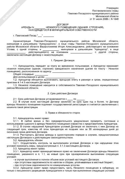 - 265Договор аренды нежилого помещения (здания, строения), находящегося в муниципальной собственности Павлово-Посадского муниципального района Московской области