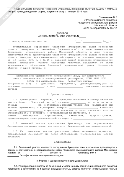 - 269Договор аренды земельного участка, находящегося в муниципальной собственности Чеховского муниципального района Московской области