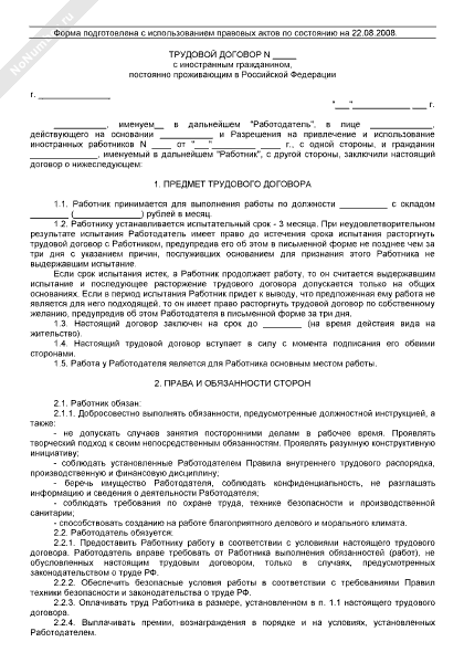 - 2931Трудовой договор с иностранным гражданином, постоянно проживающим в Российской Федерации
