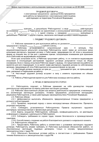 - 2934Трудовой договор с иностранным гражданином — руководителем предприятия (для работы на предприятии с иностранными инвестициями, действующем на территории Российской Федерации)