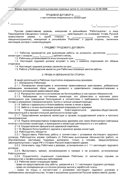 - 2938Трудовой договор с настоятелем епархиального монастыря