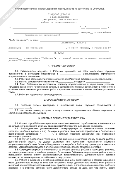 - 2922Трудовой договор с переводчиком (бессрочный; без испытания; работа по совместительству)
