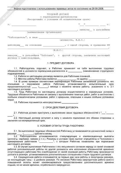 - 2923Трудовой договор с переводчиком-дактилологом (бессрочный; с условием об испытательном сроке)