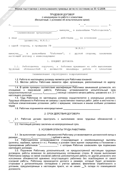 - 3042Трудовой договор с менеджером по работе с клиентами (бессрочный, с условием об испытательном сроке)