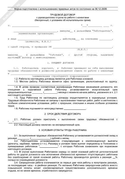 - 3043Трудовой договор с руководителем отдела по работе с клиентами (бессрочный, с условием об испытательном сроке)