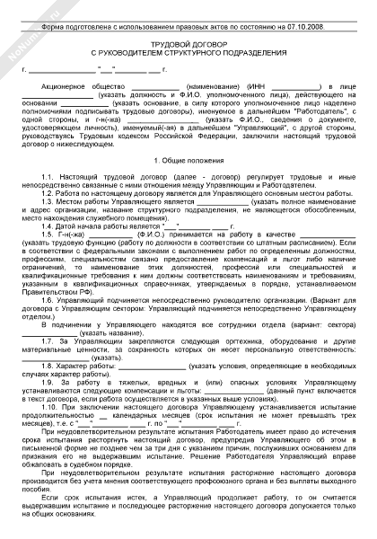 - 3051Трудовой договор с руководителем структурного подразделения акционерного общества