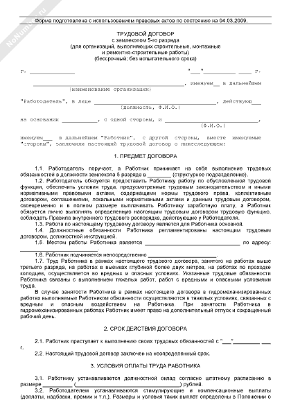 - 3056Трудовой договор с землекопом 5-го разряда (для организаций, выполняющих строительные, монтажные и ремонтно-строительные работы) (бессрочный; без испытательного срока)