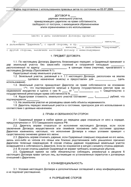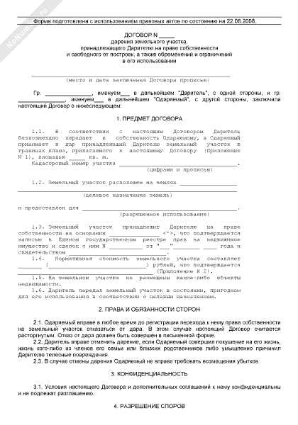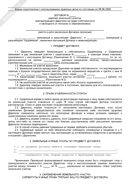 - 453Договор дарения земельного участка, принадлежащего дарителю на праве собственности и свободного от построек, а также обременений и ограничений в его использовании