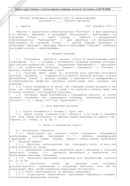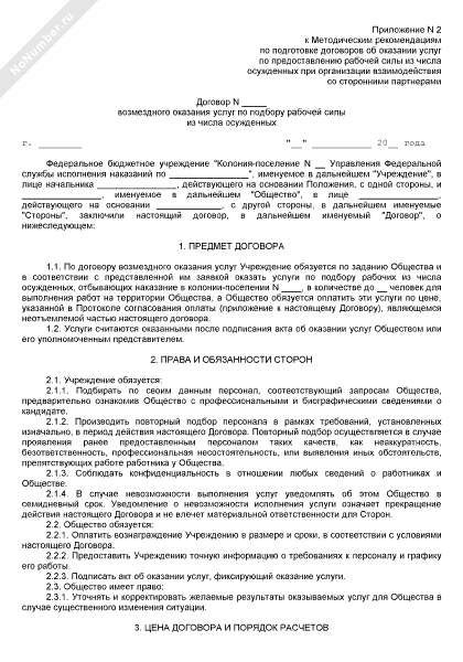 - 443Договор возмездного оказания услуг по подбору рабочей силы из числа осужденных