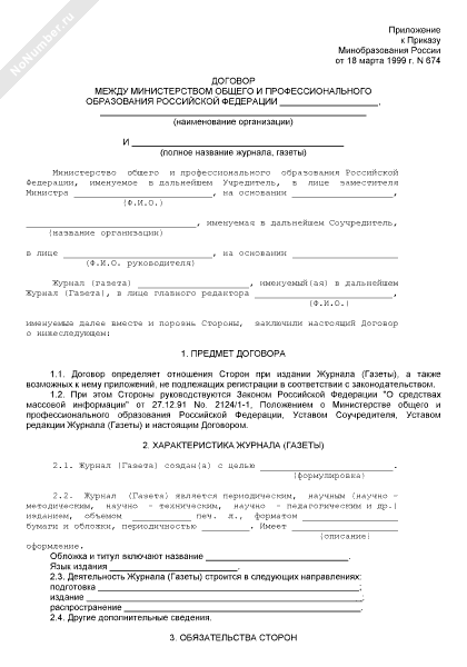 - 787Договор между Министерством общего и профессионального образования Российской Федерации и учреждаемым периодическим изданием