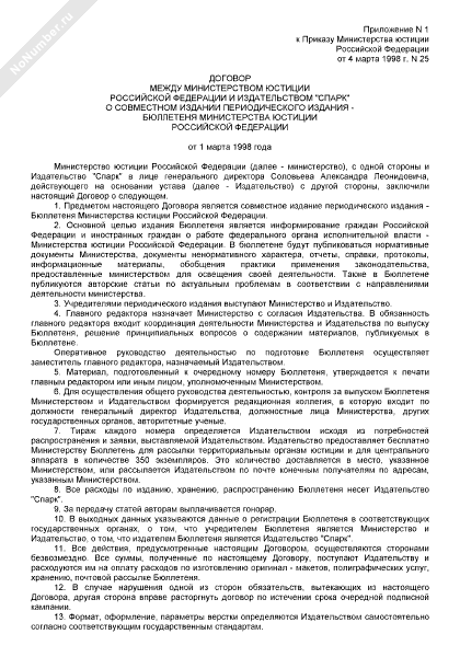 - 786Договор между Министерством юстиции Российской Федерации и Издательством «Спарк» о совместном издании периодического издания — Бюллетеня Министерства юстиции Российской Федерации