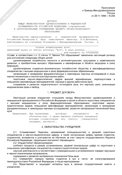 - 791Договор между Министерством здравоохранения и медицинской промышленности Российской Федерации и образовательным учреждением высшего профессионального образования