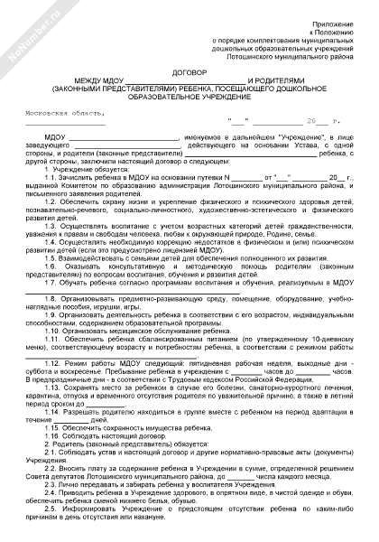 - 789Договор между муниципальным дошкольным образовательным учреждением Лотошинского муниципального района Московской области и родителями (законными представителями) ребенка, посещающего дошкольное образовательное учреждение
