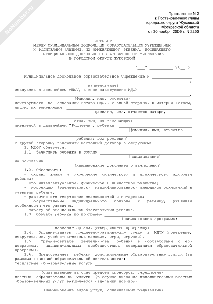 - 788Договор между муниципальным дошкольным образовательным учреждением и родителями (лицами, их заменяющими) ребенка, посещающего муниципальное дошкольное образовательное учреждение в городском округе Жуковский Московской области