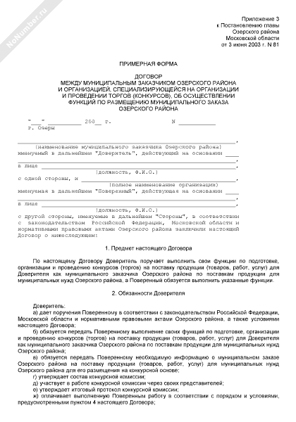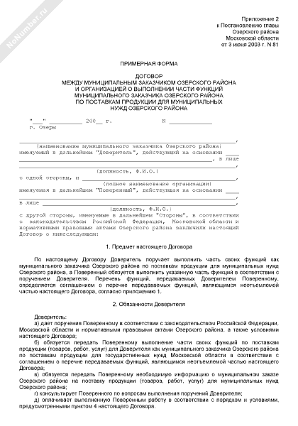 - 792Договор между муниципальным заказчиком Озерского района и организацией о выполнении части функций муниципального заказчика Озерского района по поставкам продукции для муниципальных нужд Озерского района Московской области