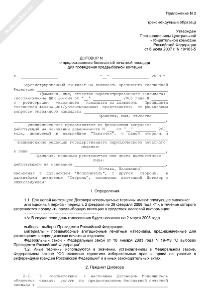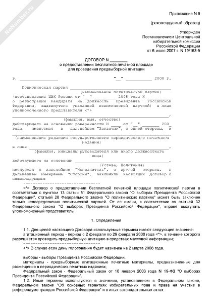 - 782Договор между зарегистрированными кандидатами и редакциями государственных периодических печатных изданий о предоставлении бесплатной печатной площади для проведения предвыборной агитации на выборах Президента Российской Федерации