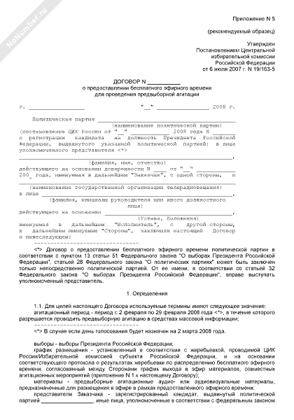 - 797Договор между политическими партиями, выдвинувшими зарегистрированных кандидатов, и государственными организациями телерадиовещания о предоставлении бесплатного эфирного времени для проведения предвыборной агитации на выборах Президента Российской Федерации