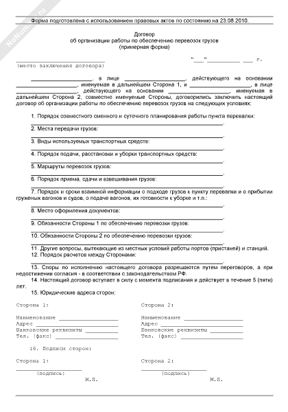 - 800Договор между транспортными организациями об организации работы по обеспечению перевозок грузов