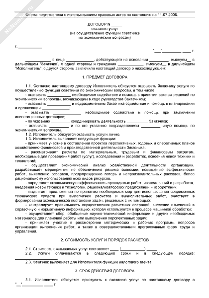 - 1590Договор оказания услуг на осуществление функции советника по экономическим вопросам