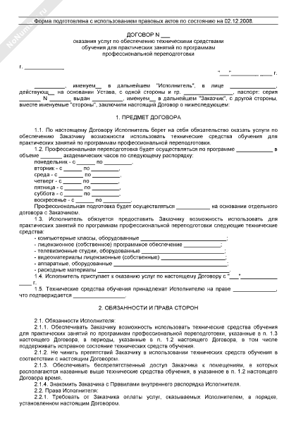 - 1591Договор оказания услуг по обеспечению техническими средствами обучения для практических занятий по программам профессиональной переподготовки