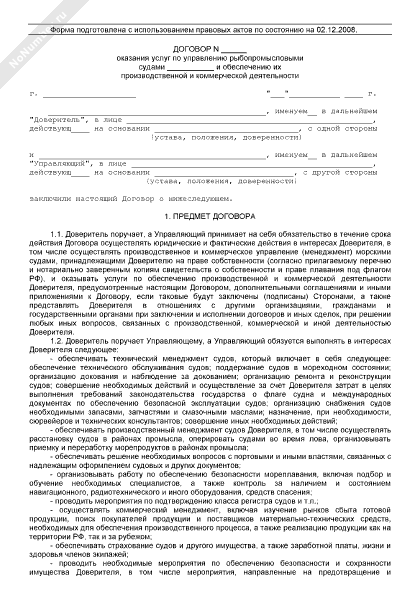 - 1587Договор оказания услуг по управлению рыбопромысловыми судами и обеспечению их производственной и коммерческой деятельности