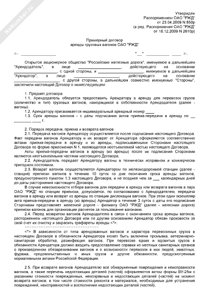 Примерный договор аренды грузовых вагонов ОАО «РЖД»