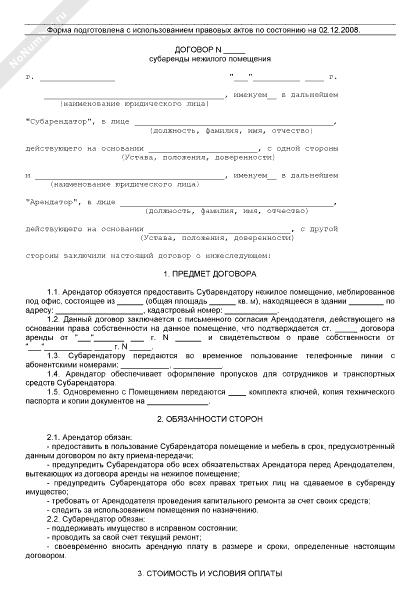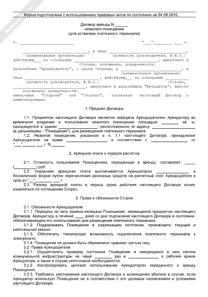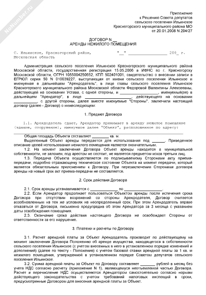 Договор аренды нежилого помещения, находящегося в муниципальной собственности сельского поселения Ильинское Красногорского муниципального района Московской области (рекомендуемый образец заполнения)