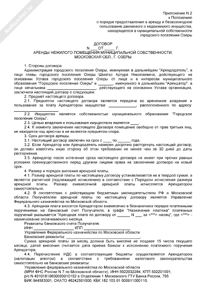 Договор аренды нежилого помещения муниципальной собственности городского поселения Озеры Московской области (рекомендуемый образец заполнения)