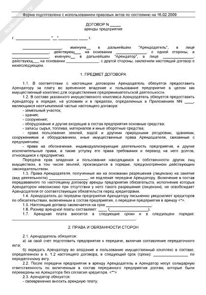 Договор аренды предприятия