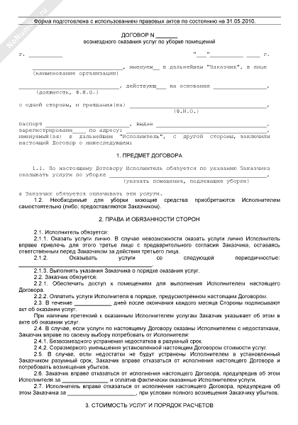 Договор возмездного оказания услуг по уборке помещений