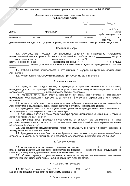 Договор аренды транспортного средства без экипажа с физическим лицом