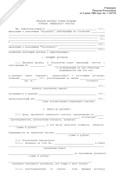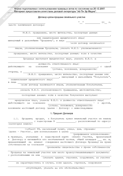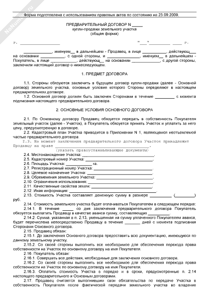 Предварительный договор купли-продажи земельного участка (общая форма)