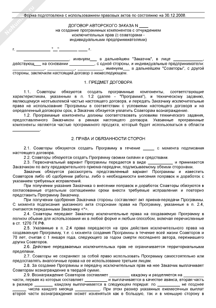 Договор авторского заказа на создание программных компонентов с отчуждением исключительных прав (с соавторами — индивидуальными предпринимателями)