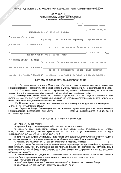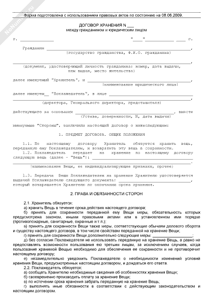 Договор хранения между гражданами (рекомендуемый образец заполнения)
