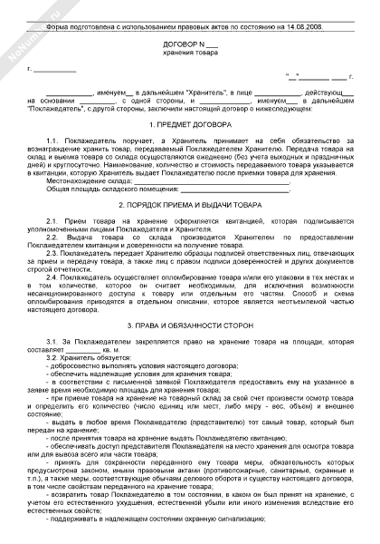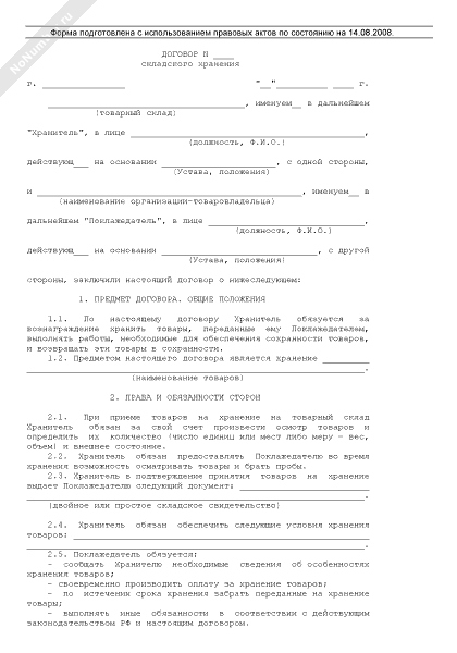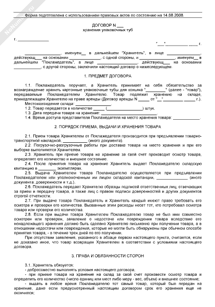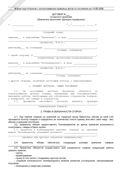 Договор складского хранения (хранитель выполняет функции подрядчика)