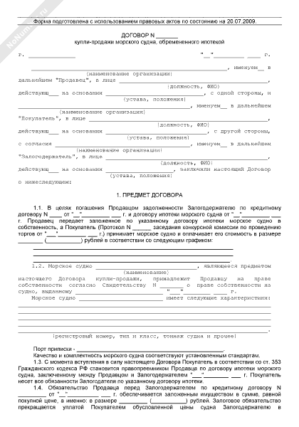 Договор купли-продажи судна (рекомендуемый образец заполнения)