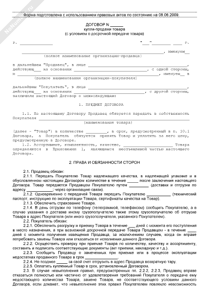 Договор купли-продажи товара (с условием о досрочной передаче товара)