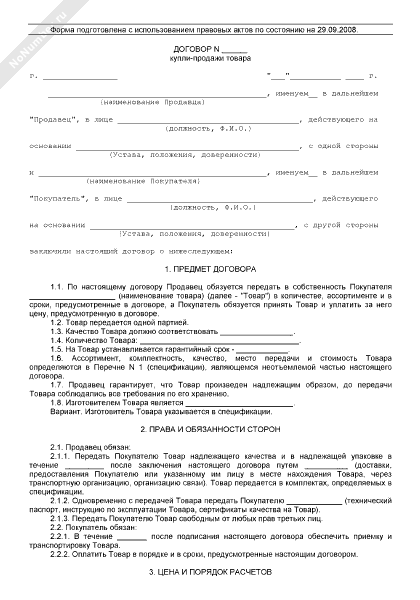 Договор купли-продажи товара