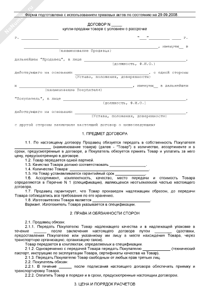 Договор купли-продажи товара (с условием о рассрочке)