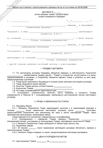 Договор купли-продажи товара, который будет создан продавцом в будущем (рекомендуемый образец заполнения)