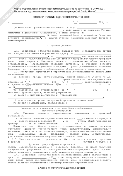 Договор участия в долевом строительстве многоквартирного жилого дома