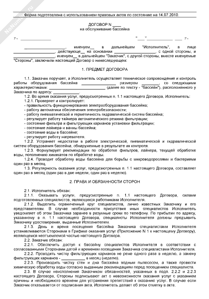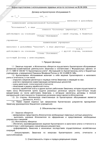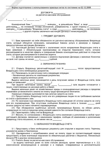 Договор на кассовое обслуживание (рекомендуемый образец заполнения)