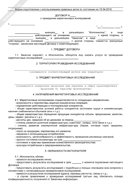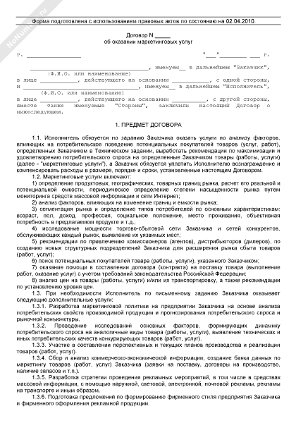 Договор на оказание маркетинговых услуг (рекомендуемый образец заполнения)