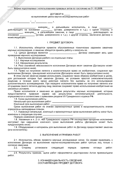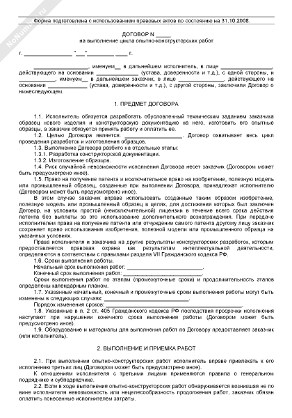 Договор на выполнение цикла технологических работ (рекомендуемый образец заполнения)